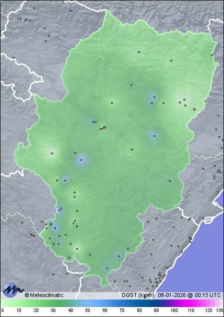 | Guadalaviar | 1519 | -0,6 | -0,6 | -7,7 | 79 | 85 | 72 | 1.027 | 1.027 | 1.024 | 6 WNW | 40 | 0,2 | 4,2 | |