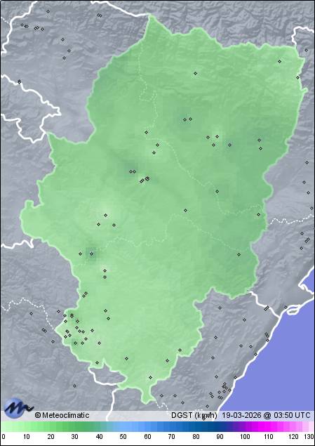 | Guadalaviar | 1519 | 11,0 | 13,4 | -0,6 | 63 | 85 | 47 | 1.013 | 1.015 | 1.012 | 6 SSE | 23 | - | 397,4 | |
