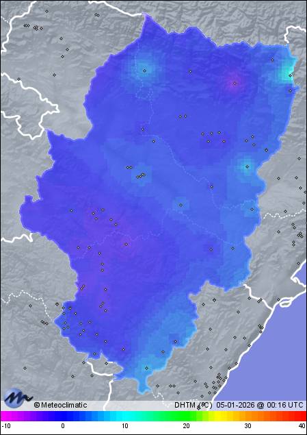 | Bronchales | 1596 | -5,6 | -5,6 | -8,3 | 82 | 83 | 75 | 1.025 | 1.025 | 1.024 | 39 NNW | 60 | - | 1,2 | |