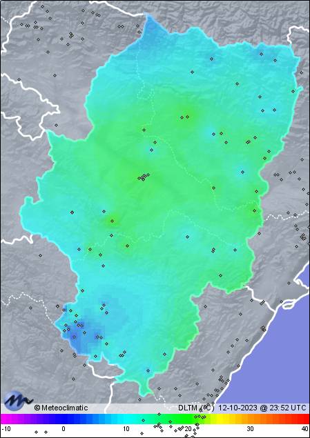 | 12-10-2023 | | | Máx. | Mín. | | | Temperatura | 18,0 | 11,0 | °C | | Humedad | 0 | 0 | % | | Viento | 0 | n/a | km/h |
