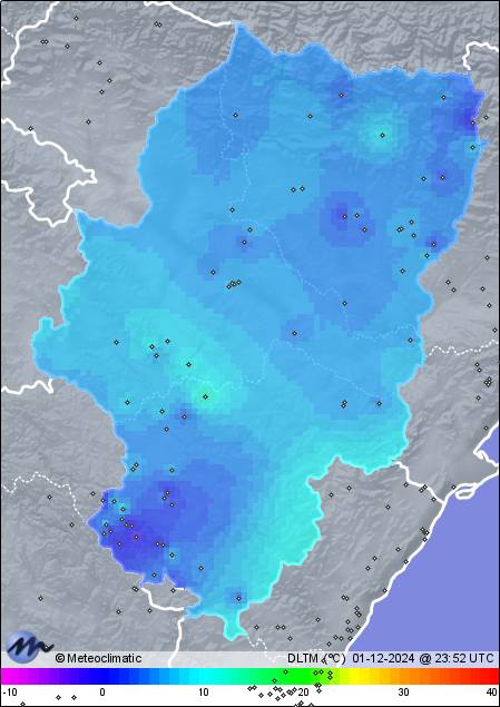 | 01-12-2024 | | | Máx. | Mín. | | | Temperatura | 17,5 | 3,6 | °C | | Precipitación | 0,0 | mm |