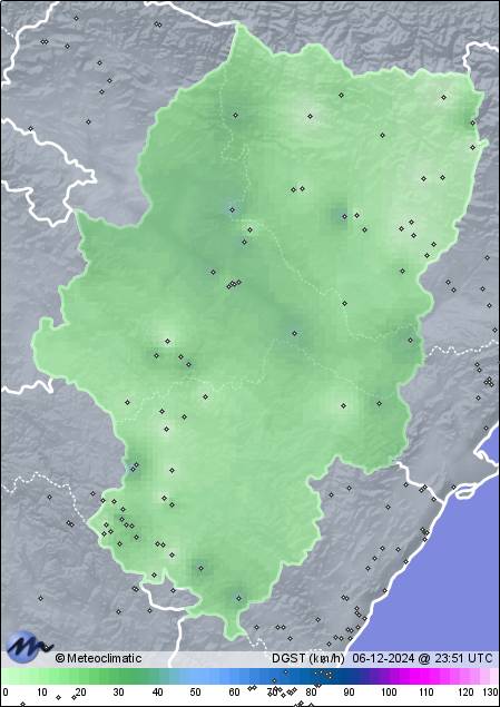| 06-12-2024 | | | Máx. | Mín. | | | Temperatura | 15,4 | 4,8 | °C | | Humedad | 96 | 71 | % | | Viento | 38 | n/a | km/h | | Precipitación | 0,0 | mm |