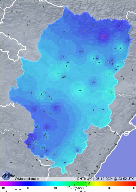 | 08-12-2024 | | | Máx. | Mín. | | | Temperatura | 4,4 | 0,1 | °C | | Precipitación | 1,0 | mm |