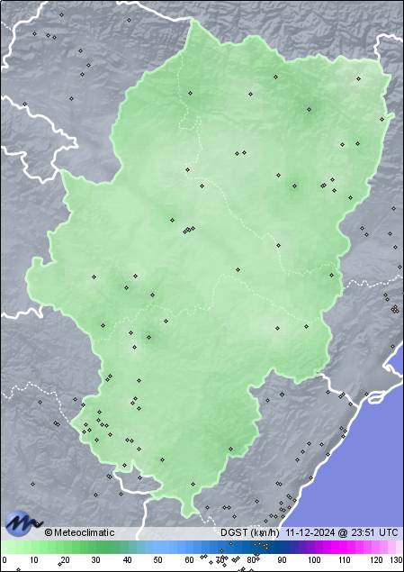 | 11-12-2024 | | | Máx. | Mín. | | | Temperatura | 3,7 | -0,5 | °C | | Humedad | 94 | 65 | % | | Viento | 22 | n/a | km/h |