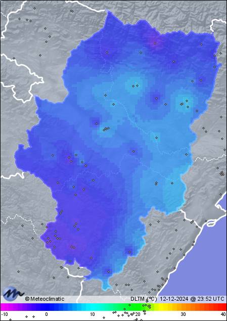 | 12-12-2024 | | | Máx. | Mín. | | | Temperatura | 5,7 | -2,0 | °C | | Precipitación | 0,0 | mm |