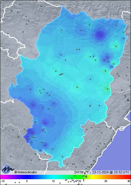 | 23-12-2024 | | | Máx. | Mín. | | | Temperatura | 6,5 | 3,2 | °C | | Humedad | 98 | 72 | % | | Presión | 1.030 | 1.023 | hPa |