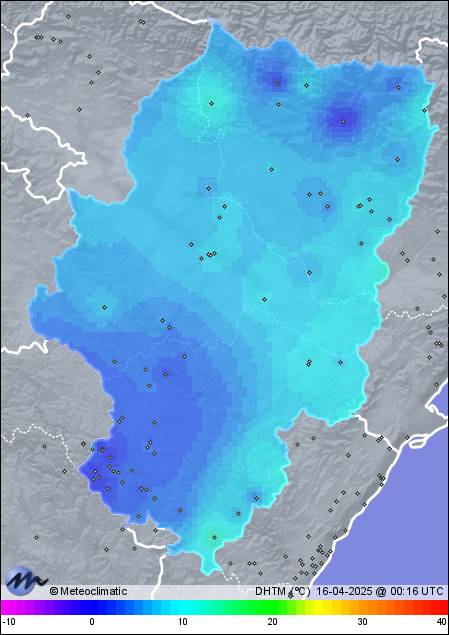 | 15-04-2025 | | | Máx. | Mín. | | | Temperatura | 5,8 | -0,1 | °C | | Humedad | 93 | 78 | % | | Viento | 34 | n/a | km/h | | Presión | 1.010 | 1.002 | hPa | | Precipitación | 13,2 | mm |