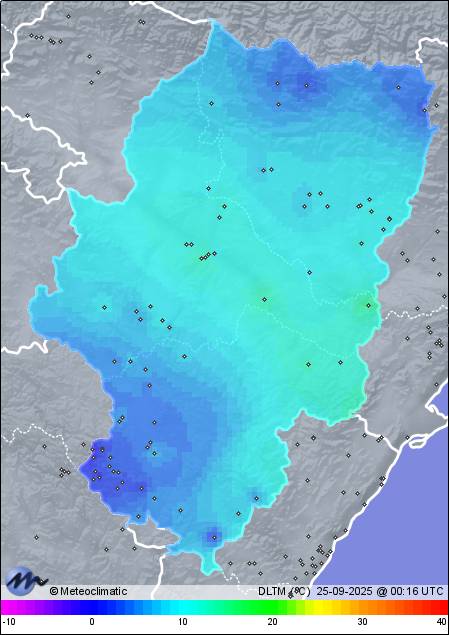 24-09-2025 | | Máx. | Mín. | | Temperatura | 20,6 | 9,6 | °C | Humedad | 72 | 42 | % | Viento | 30 | n/a | km/h | Presión | 1.025 | 1.022 | hPa | Precipitación | 0,0 | mm |