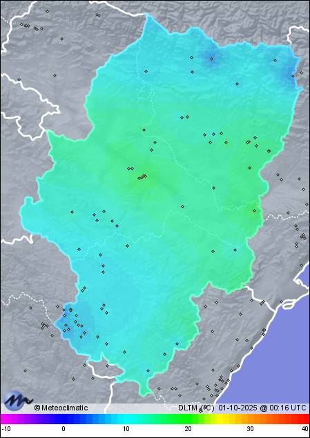 30-09-2025 | | Máx. | Mín. | | Temperatura | 19,6 | 9,8 | °C | Humedad | 99 | 50 | % | Viento | 18 | n/a | km/h | Precipitación | 0,0 | mm |