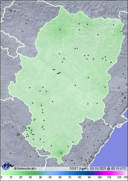 02-10-2025 | | Máx. | Mín. | | Temperatura | 25,6 | 3,9 | °C | Humedad | 97 | 27 | % | Viento | 35 | n/a | km/h | Presión | 1.026 | 1.022 | hPa | Precipitación | 0,0 | mm |