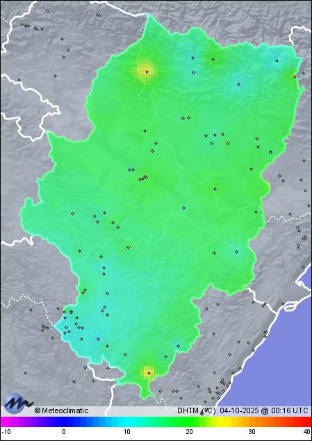 03-10-2025 | | Máx. | Mín. | | Temperatura | 19,4 | 9,4 | °C | Humedad | 78 | 47 | % | Viento | 17 | n/a | km/h | Presión | 1.024 | 1.020 | hPa | Precipitación | 0,0 | mm |