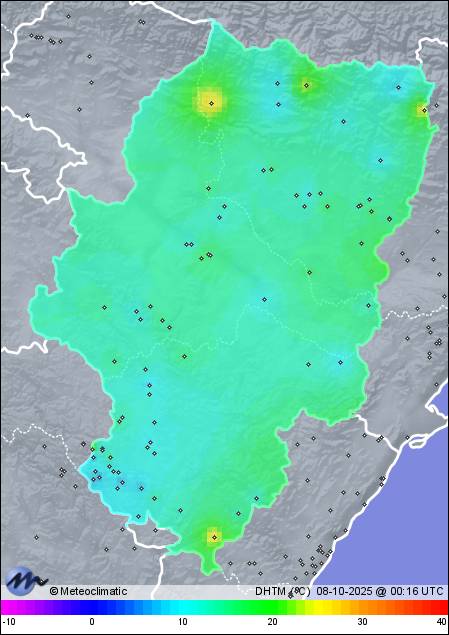 07-10-2025 | | Máx. | Mín. | | Temperatura | 23,5 | 9,3 | °C | Humedad | 88 | 38 | % | Presión | 1.022 | 1.018 | hPa |