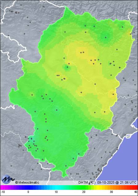 | Noguera de Albarracín | 1400 | 13,2 | 16,3 | 9,3 | 72 | 94 | 57 | 1.023 | 1.024 | 1.019 | 4 WNW | 24 | 0,2 | 472,3 | |
