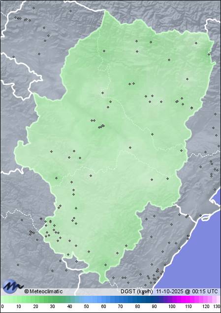 10-10-2025 | | Máx. | Mín. | | Temperatura | 12,1 | 11,6 | °C | Humedad | 80 | 79 | % | Viento | 8 | n/a | km/h | Presión | 1.027 | 1.026 | hPa | Precipitación | 0,0 | mm |