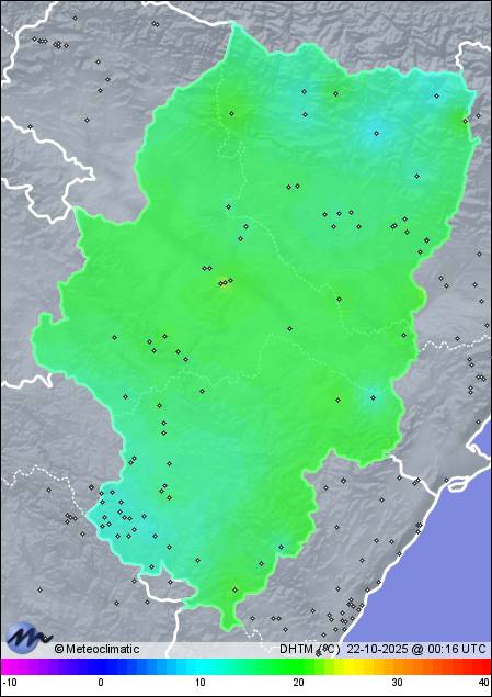 | 21-10-2025 | | | Máx. | Mín. | | | Temperatura | 18,2 | 9,4 | °C | | Precipitación | 0,0 | mm |