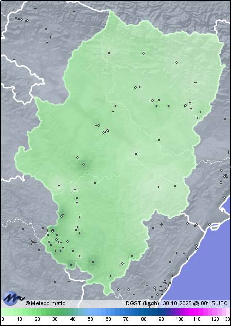 | 29-10-2025 | | | Máx. | Mín. | | | Temperatura | 14,7 | 9,1 | °C | | Humedad | 95 | 51 | % | | Viento | 31 | n/a | km/h | | Precipitación | 0,0 | mm |