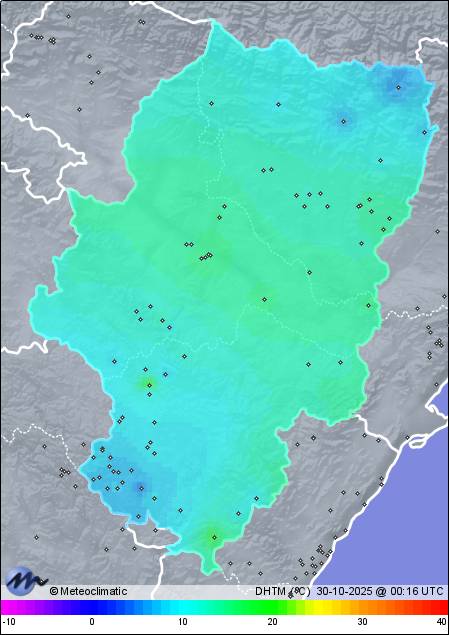 | 29-10-2025 | | | Máx. | Mín. | | | Temperatura | 18,6 | 9,6 | °C | | Humedad | 96 | 59 | % | | Presión | 1.009 | 1.005 | hPa |