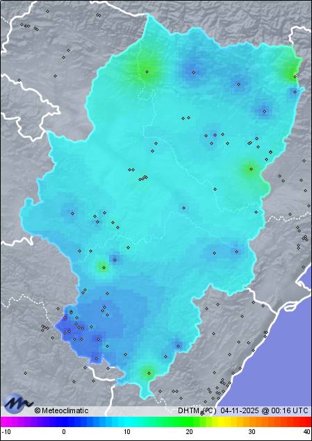 |  03-11-2025 |  |   | Máx. | Mín. |   |  | Temperatura | 15,8 | -0,9 |  °C  |  | Humedad | 99 | 48 |  %  |  | Viento | 11 | n/a |  km/h  |  | Presión |  1.031  |  1.025  |  hPa  |  | Precipitación | 0,0 |  mm  |