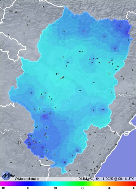 |  03-11-2025 |  |   | Máx. | Mín. |   |  | Temperatura | 15,9 | 3,1 |  °C  |  | Humedad | 92 | 36 |  %  |  | Viento | 18 | n/a |  km/h  |  | Precipitación | 0,0 |  mm  |