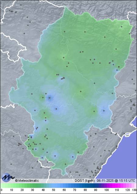 | Guadalaviar | 1519 | 4,9 | 8,3 | 3,4 | 86 | 92 | 85 | 1.013 | 1.013 | 1.009 | 11 NW | 37 | 5,4 | 663,4 | |