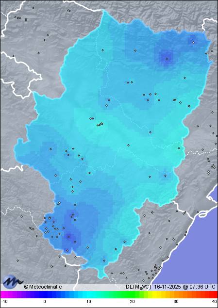 | Actualizado: 05:59 UTC | 9,9°C 83% | 11,3 °C / 91% | | 8,8°C / 78% | | Calma | | 7 km/h | | 1.011 hPa |