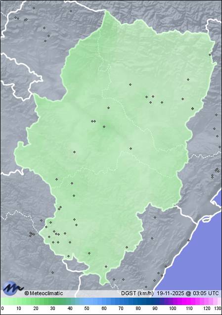 | Bronchales | 1596 | 1,9 | 2,9 | 1,8 | 76 | 76 | 66 | 1.017 | 1.019 | 1.017 | 19 WSW | 35 | - | 565,8 | |