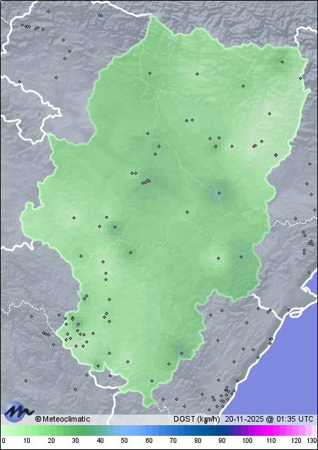 | Noguera de Albarracín | 1400 | 2,1 | 2,1 | 2,0 | 81 | 81 | 80 | 1.018 | 1.019 | 1.018 | 3 NNW | 15 | - | 557,4 | |