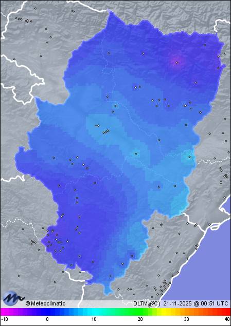 | Guadalaviar | 1519 | -1,2 | 3,6 | -1,3 | 79 | 90 | 61 | 1.020 | 1.021 | 1.018 | 13 WNW | 35 | - | 716,8 | |