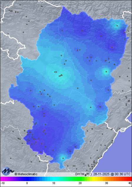 | Actualizado:27-11-2025 23:45 UTC | 5,6°C 76% | 11,3 °C / 83% | | 0,7°C / 41% | | 1.027 hPa |