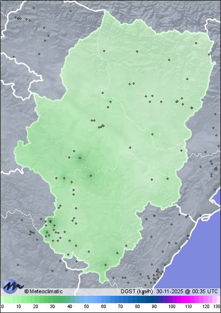 | 30-11-2025 | | | Máx. | Mín. | | | Temperatura | 13,0 | 3,9 | °C | | Humedad | 87 | 63 | % | | Viento | 11 | n/a | km/h | | Presión | 1.020 | 1.013 | hPa | | Precipitación | 0,0 | mm |