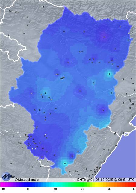 | Rubielos de Mora | 936 | -1,1 | -0,8 | -1,3 | 86 | 86 | 82 | 1.013 | 1.013 | 1.013 | 2 ESE | 8 | - | 493,2 | |