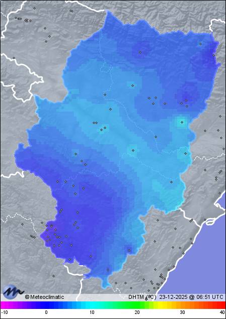 | Noguera de Albarracín | 1400 | -1,2 | -0,7 | -1,2 | 85 | 85 | 82 | 1.012 | 1.014 | 1.012 | 8 NW | 29 | - | 605,1 | |