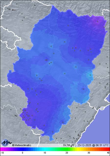 | Noguera de Albarracín | 1400 | -1,2 | -0,7 | -1,2 | 85 | 85 | 82 | 1.012 | 1.014 | 1.012 | 8 NW | 29 | - | 605,1 | |