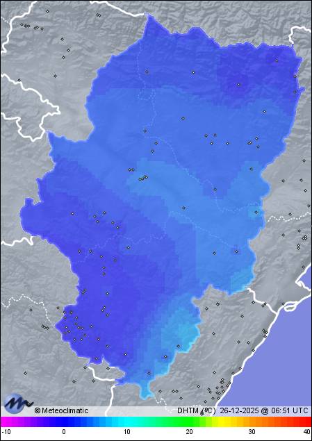 | Noguera de Albarracín | 1400 | 0,7 | 0,8 | -2,2 | 94 | 97 | 94 | 1.015 | 1.016 | 1.014 | 4 WNW | 7 | - | 605,6 | |