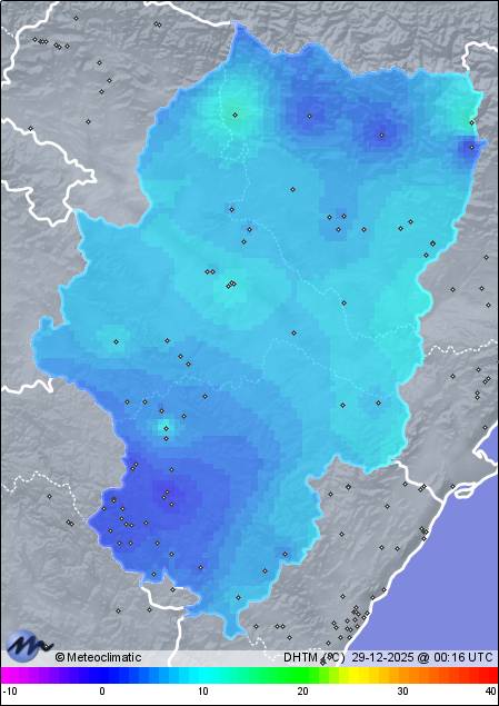 | 28-12-2025 | | | Máx. | Mín. | | | Temperatura | 8,1 | 4,8 | °C | | Humedad | 99 | 93 | % | | Presión | 1.019 | 1.016 | hPa |