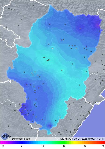 | 08-01-2026 | | | Máx. | Mín. | | | Temperatura | 12,5 | -3,6 | °C | | Humedad | 98 | 44 | % | | Viento | 38 | n/a | km/h | | Presión | 1.031 | 1.024 | hPa | | Precipitación | 0,0 | mm |