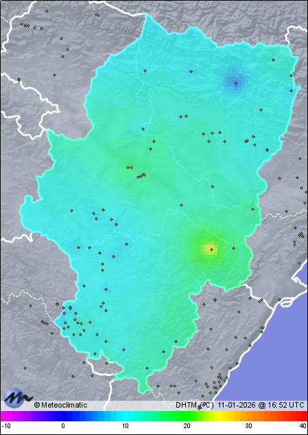| Torremocha del Jiloca | 994 | -2,9 | -0,9 | -6,8 | 95 | 96 | 89 | 1.032 | 1.032 | 1.031 | 3 WNW | 26 | - | 1,0 | |