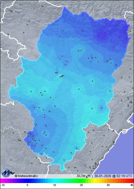 | Noguera de Albarracín | 1400 | 4,4 | 4,7 | 4,4 | 81 | 81 | 79 | 1.010 | 1.010 | 1.009 | 12 NNW | 33 | - | 62,8 | |