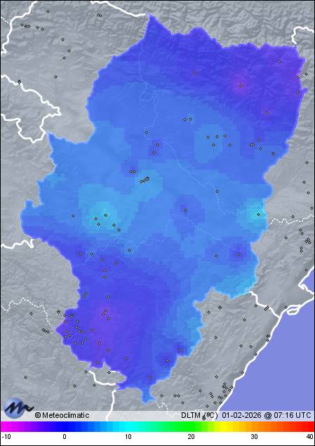 | Torremocha del Jiloca | 994 | -2,1 | -0,4 | -2,6 | 94 | 94 | 88 | 1.020 | 1.021 | 1.020 | 5 SSW | 15 | - | 20,0 | |