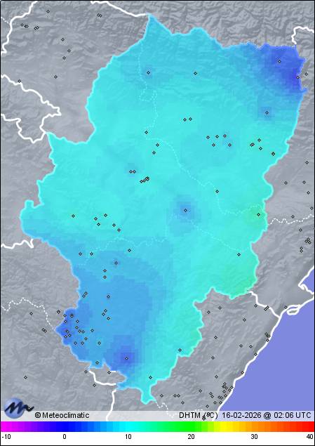 | Torremocha del Jiloca | 994 | 4,7 | 4,8 | 4,5 | 84 | 85 | 84 | 1.027 | 1.027 | 1.026 | 10 NNW | 21 | - | 30,8 | |