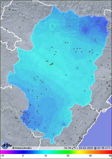 | Actualizado: 00:58 UTC | 5,7°C 93% | 6,1 °C / 93% |  | | 5,7°C / 91% | | Calma | | 5 km/h | | 1.022 hPa | | 0,2 mm |
