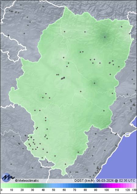| Fuentes Claras-VOR | 930 | 5,9 | 5,9 | 4,8 | 93 | 94 | 93 | 1.012 | 1.013 | 1.012 | 5 NNE | 10 | - | 67,0 | |