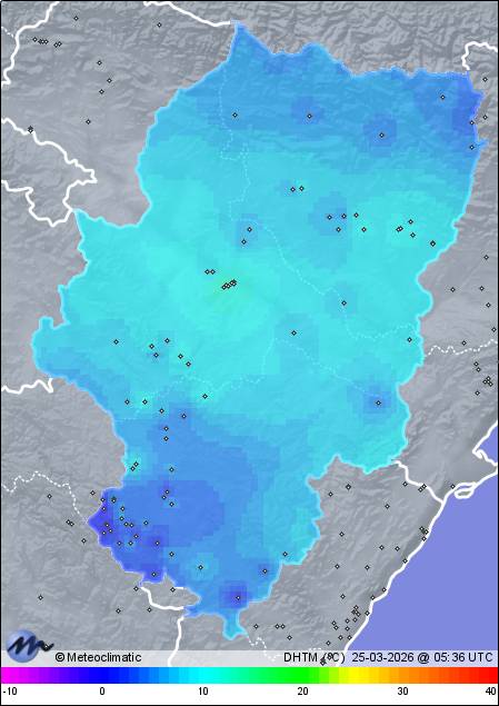 | Actualizado: 01:30 UTC | 9,9°C 66% | 9,9 °C / 79% | | 7,3°C / 66% | | 1.025 hPa |