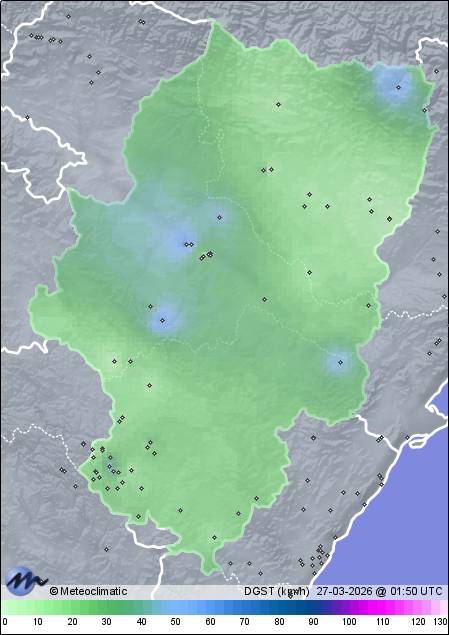 | Guadalaviar | 1519 | -0,4 | -0,4 | -0,5 | 58 | 60 | 58 | 1.020 | 1.020 | 1.020 | 6 SSE | 24 | - | 397,4 | |