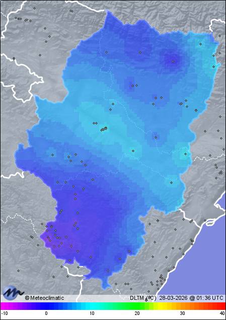 | Calamocha | 885 | -0,5 | -0,4 | -0,6 | 84 | 85 | 84 | 1.021 | 1.021 | 1.021 | - | 0 | - | 127,4 | |