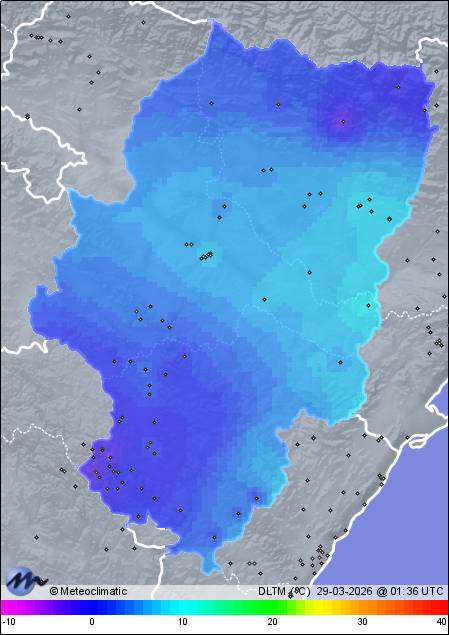 | Noguera de Albarracín | 1400 | -1,3 | -1,2 | -1,3 | 70 | 70 | 69 | 1.027 | 1.027 | 1.027 | 22 WNW | 26 | - | 282,5 | |