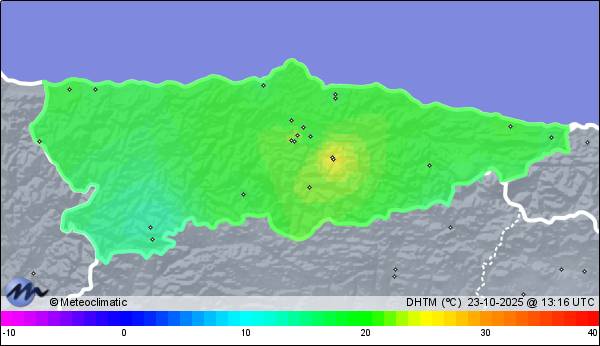 | El Entrego-El Colláu | 410 | 12,6 | 24,2 | 11,7 | 63 | 86 | 48 | 1.014 | 1.014 | 1.003 | 15 WNW | 89 | 0,4 | 710,2 | |