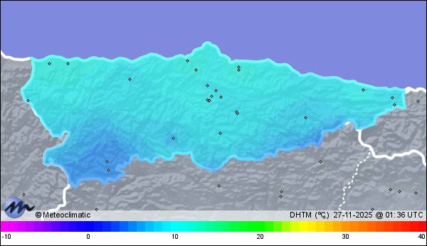 | Actualizado: 22:29 UTC | 6,8°C 92% | 13,7 °C / 99% | | 3,2°C / 65% | | Calma | | 9 km/h | | 1.028 hPa |