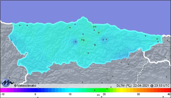 | 22-04-2021 | | | Máx. | Mín. | | | Temperatura | 17,9 | 9,2 | °C | | Humedad | 98 | 63 | % | | Viento | 23 | n/a | km/h | | Presión | 1.015 | 1.010 | hPa | | Precipitación | 1,6 | mm |