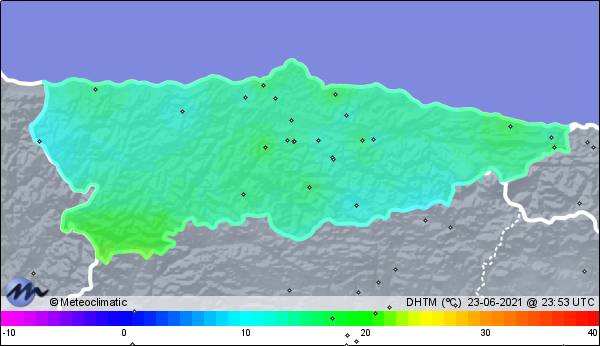 | 23-06-2021 | | | Máx. | Mín. | | | Temperatura | 17,1 | 13,2 | °C | | Humedad | 90 | 66 | % | | Viento | 24 | n/a | km/h | | Presión | 1.029 | 1.025 | hPa |